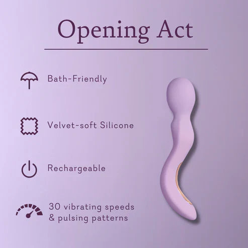 The perfect prelude to every late-night show, Opening Act pleases with 30 vibrations and pulsing patterns. Ergonomically contoured, this silicone wand vibrator is designed to tantalize the clitoris, but you can also dance it down your every curve for the best kind of full-body massage. Try it in the bedroom or the bath and play any way you wish.